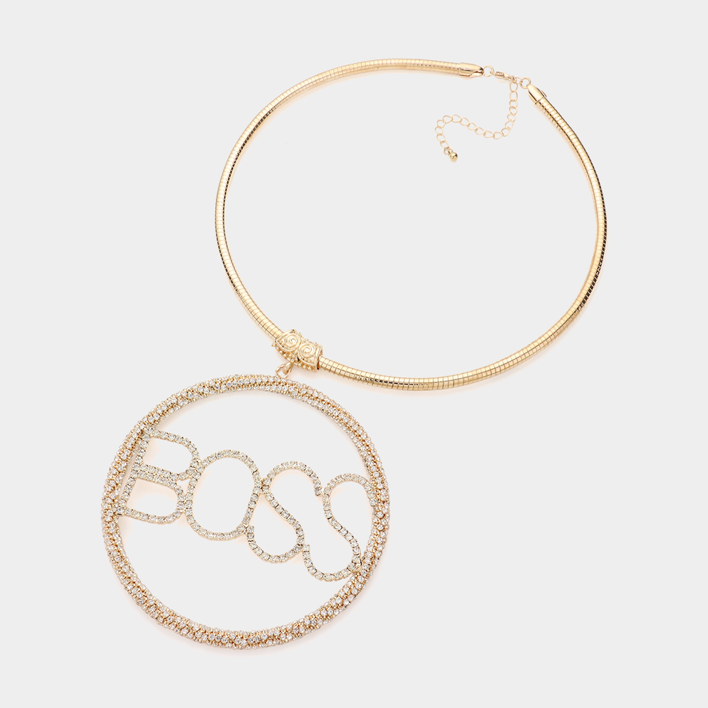 BOSS Rhinestone Embellished Message Open Circle Pendant Necklace