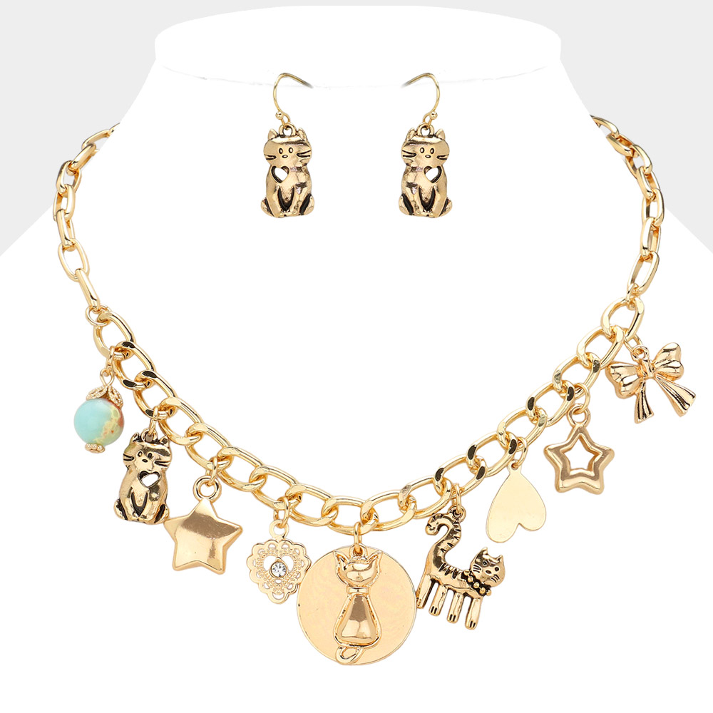 Bow Cat Star Heart Pendant Chain Necklace