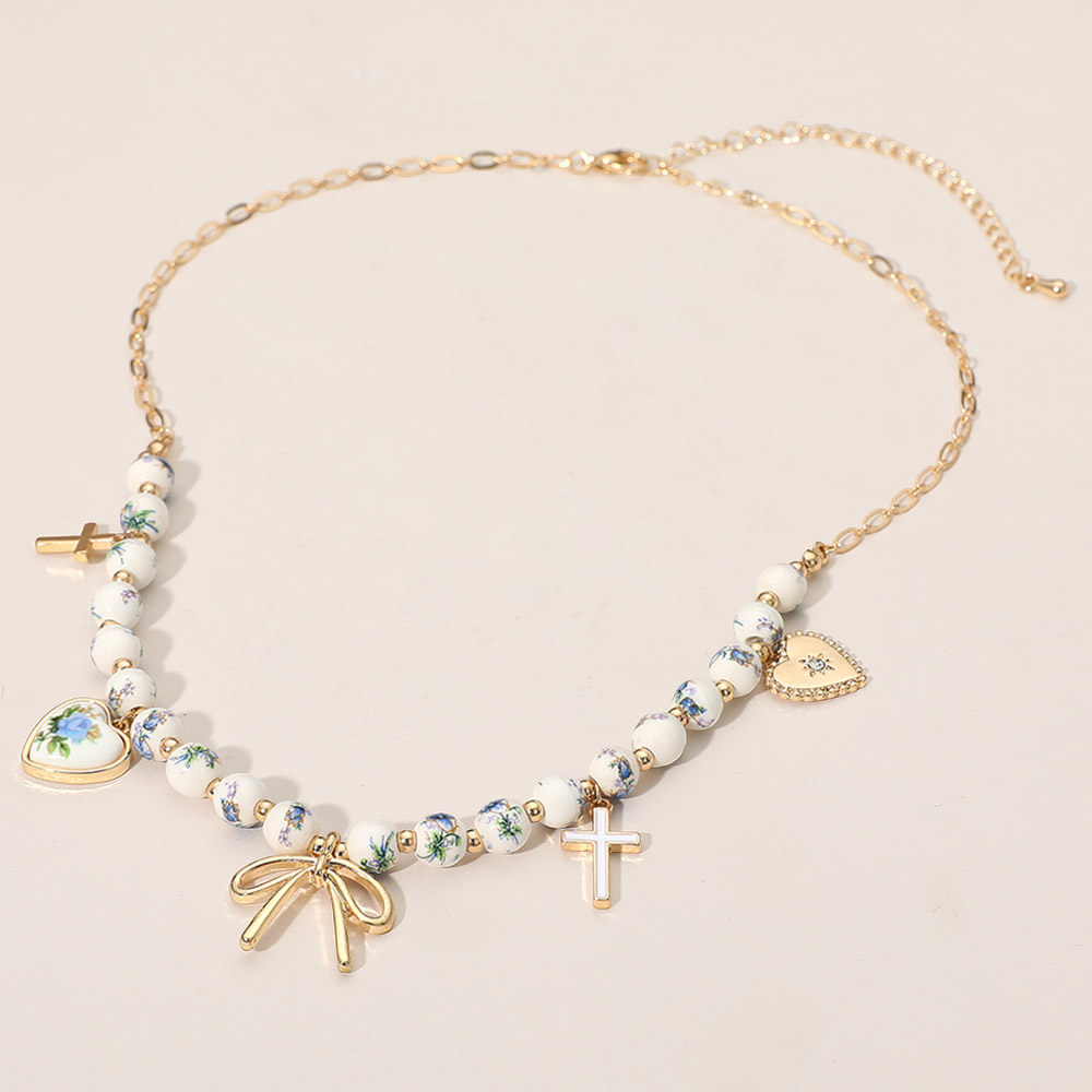 Bow Cross Heart Charm Beaded Floral Beaded Necklace Bow Cross Heart Charm Beaded Floral Beaded Necklace Bow Cross Heart Charm Beaded Floral Beaded Necklace