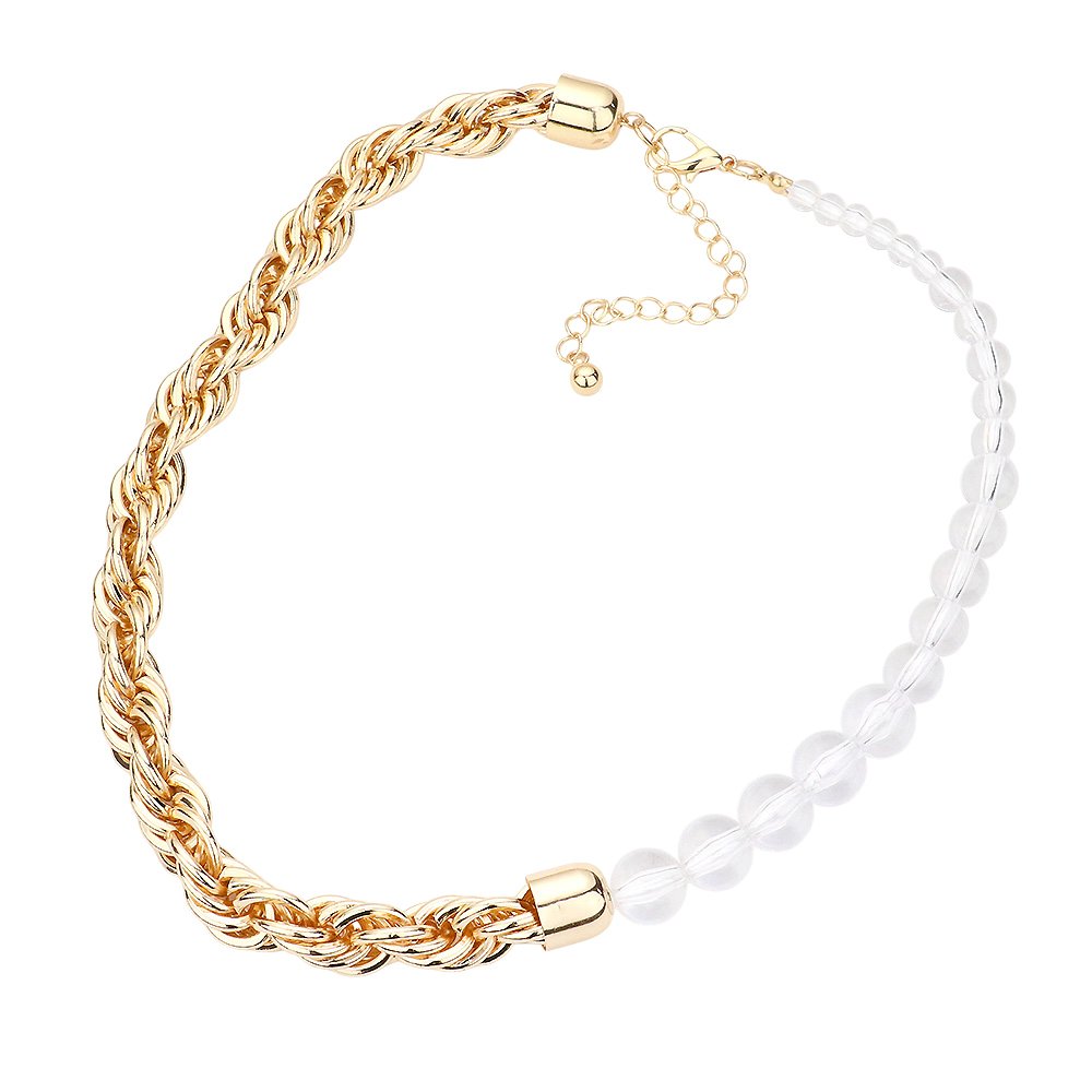 Frosted Metal Wood Ball Lucite Stone Link Necklace
