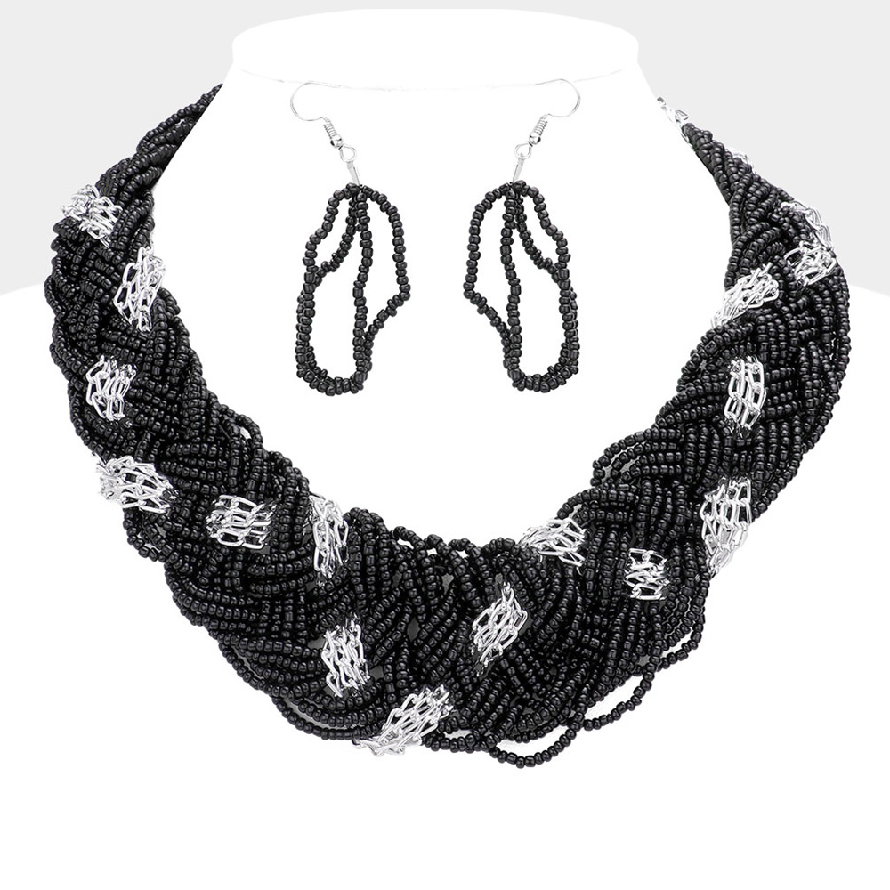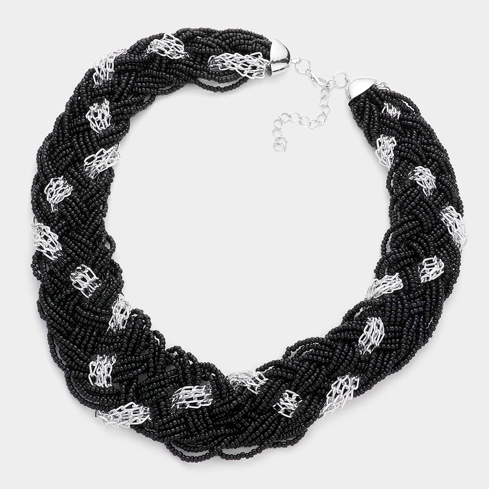 Braided Metal Chain Seed Beaded Necklace