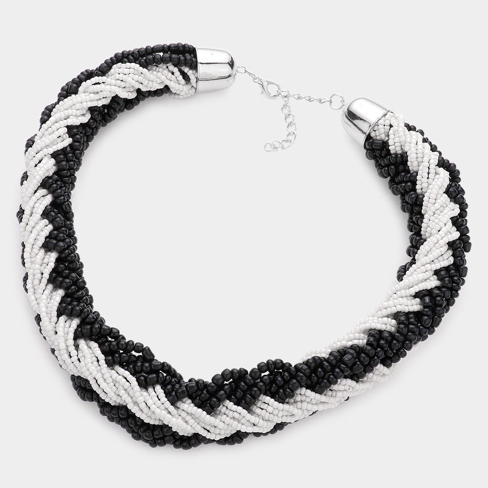 Braided Two Tone Seed Beaded Necklace