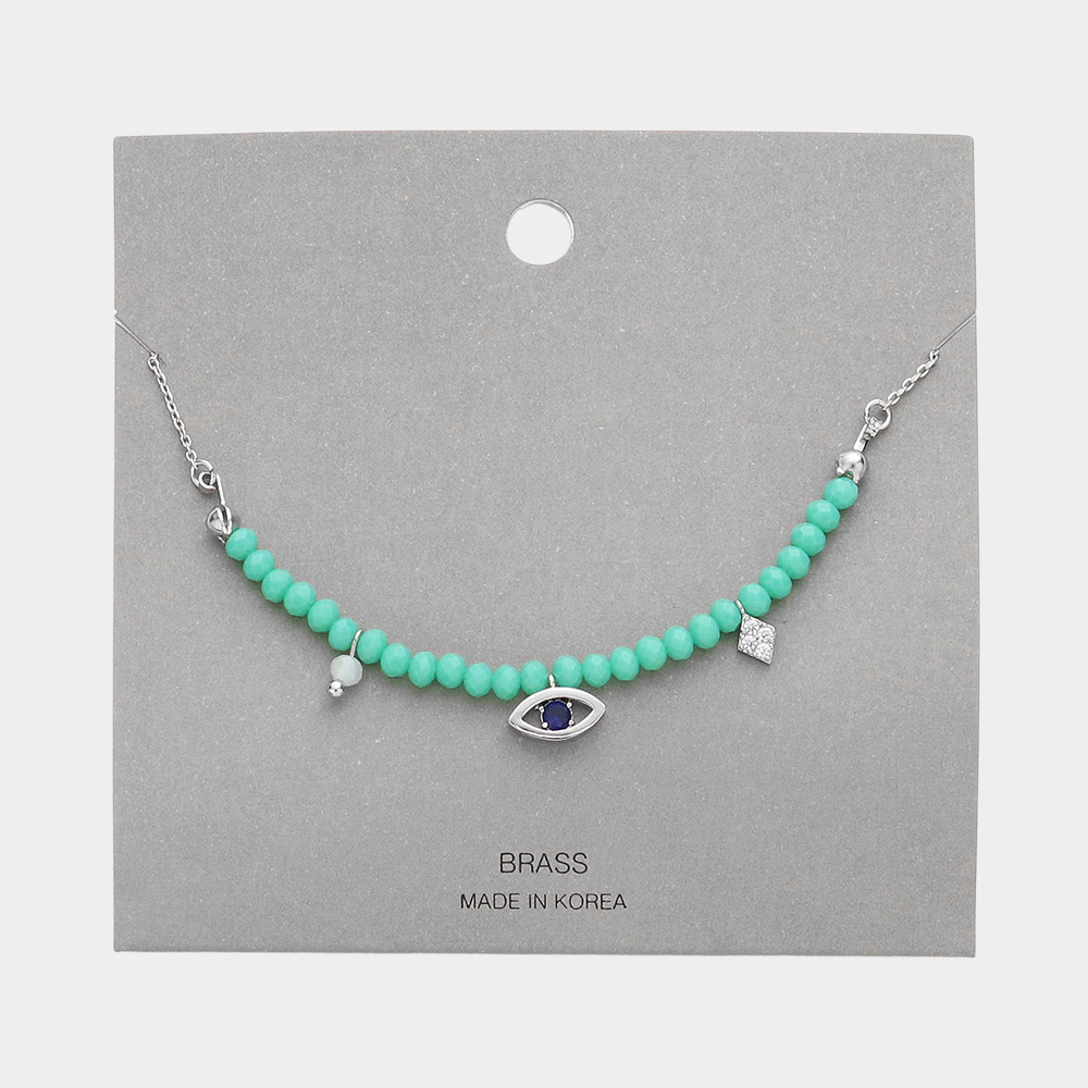Brass Metal Evil Eye Accented Faceted Beaded Necklace