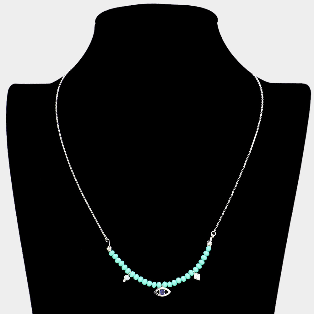 Metal Evil Eye Pendant Faceted Beaded Necklace