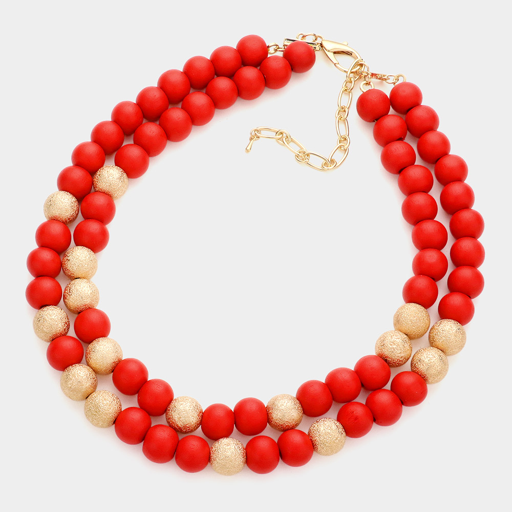 Mardi Gras Brass Metal Wood Ball Double Layered Necklace