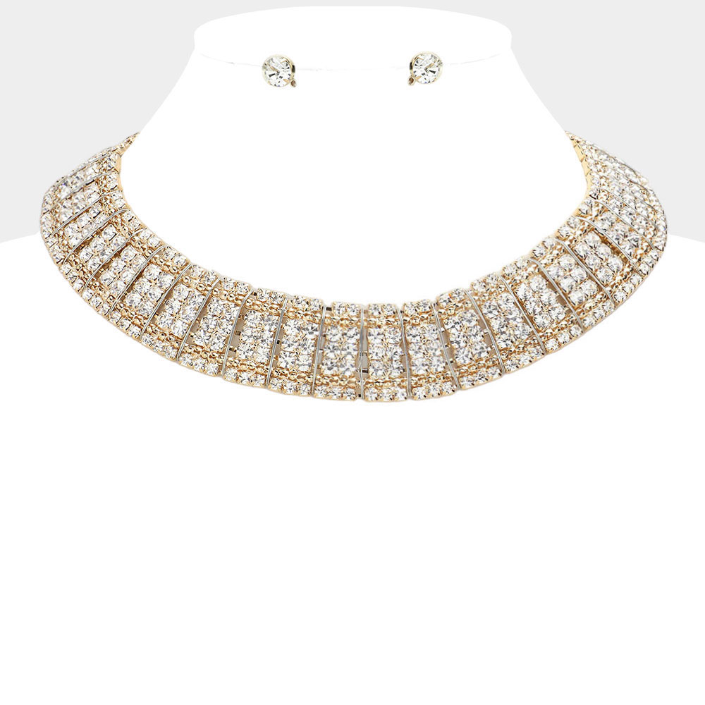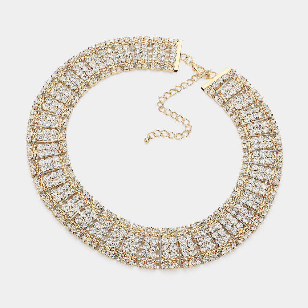 Animal Printed Fur Sparkly Stone Embellished Bib Necklace