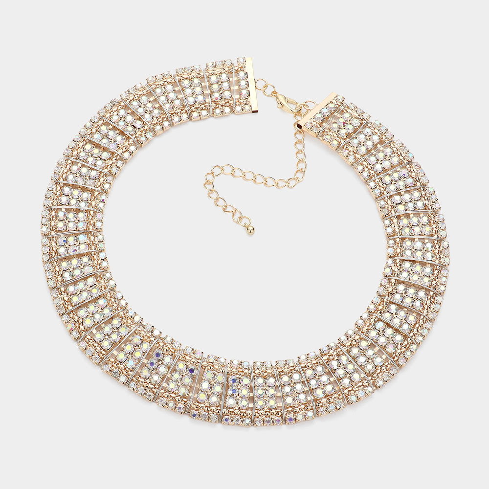 Crystal Rhinestone Trim Teardrop Collar Evening Necklace