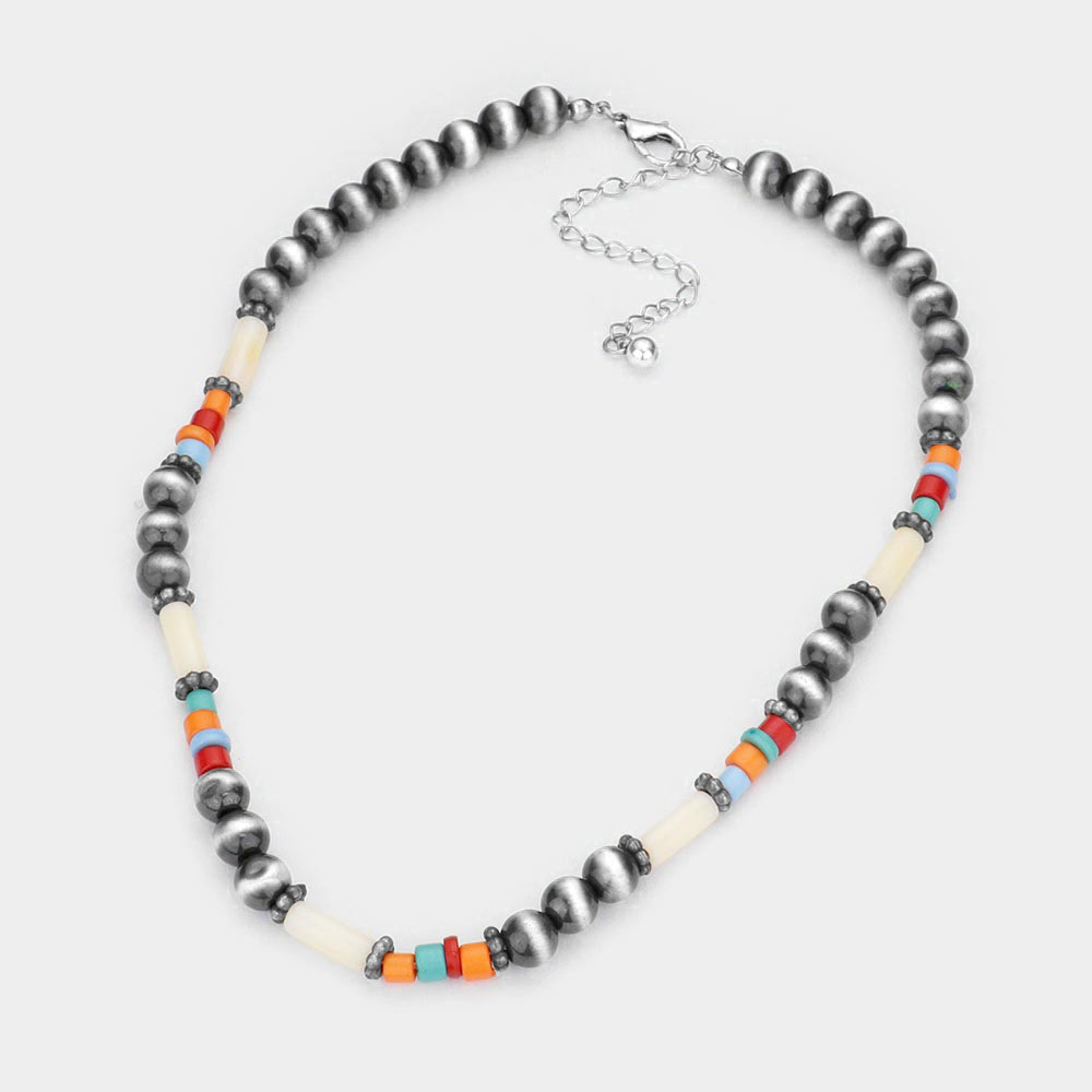 Burnished Metal Ball Beaded Necklace