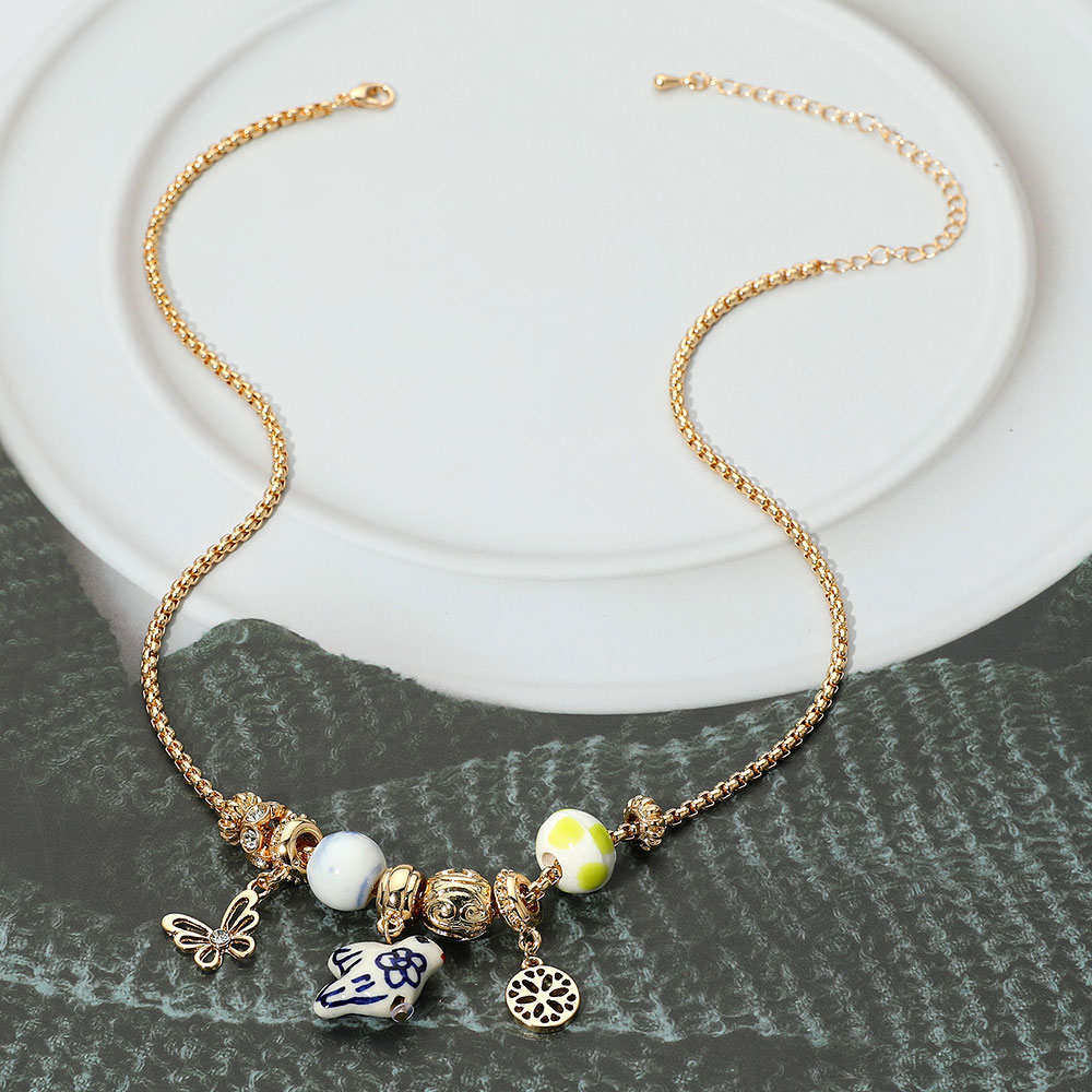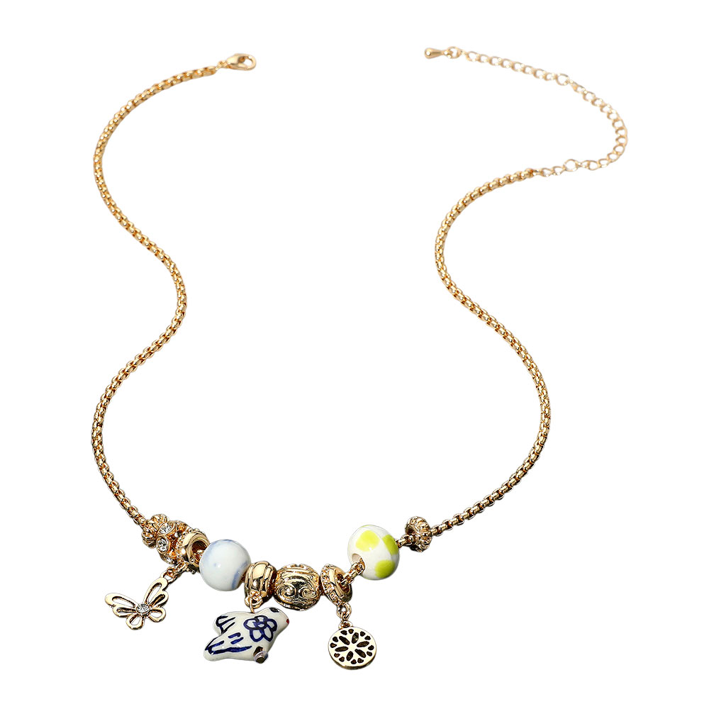 Butterfly Ceramic Bird Charm Beaded Necklace Butterfly Ceramic Bird Charm Beaded Necklace Butterfly Ceramic Bird Charm Beaded Necklace