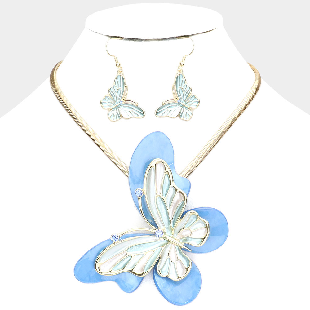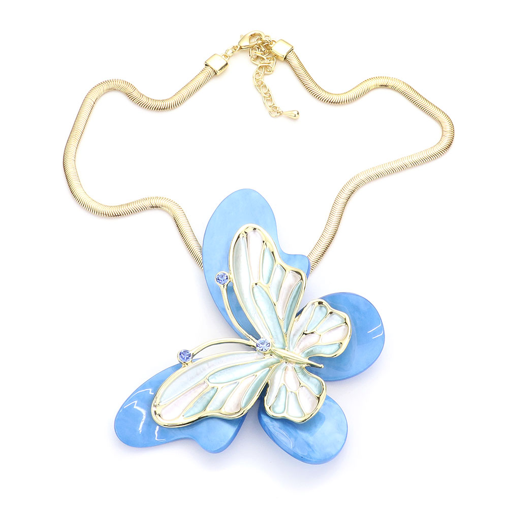 Celluloid Acetate Colored Metal Butterfly Pendant Necklace