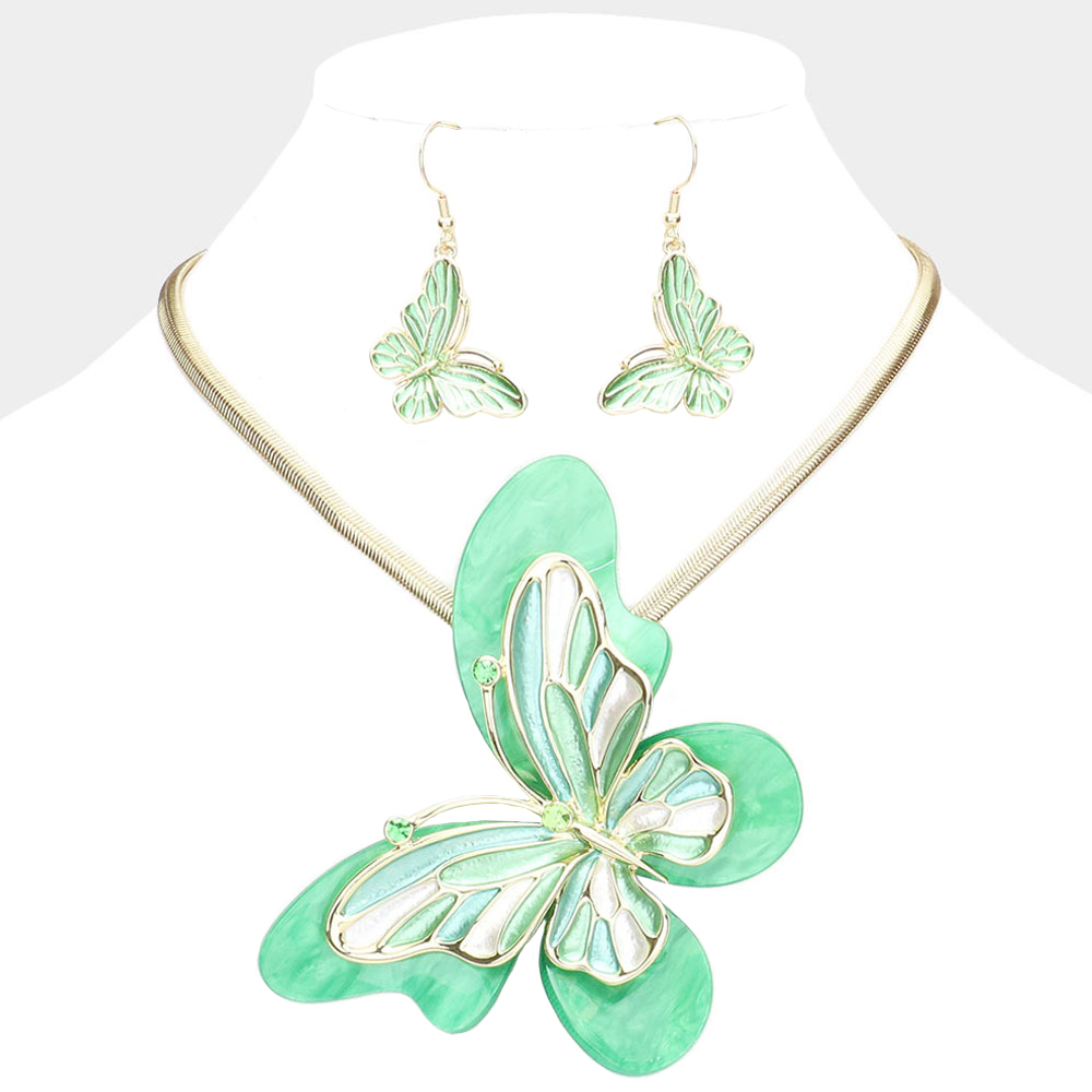 Celluloid Acetate Colored Metal Butterfly Pendant Necklace