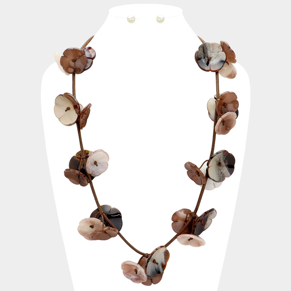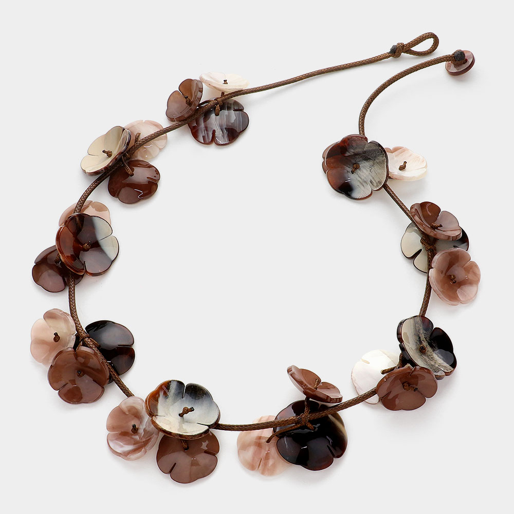 Celluloid Acetate Flower Beaded Faux Leather Necklace