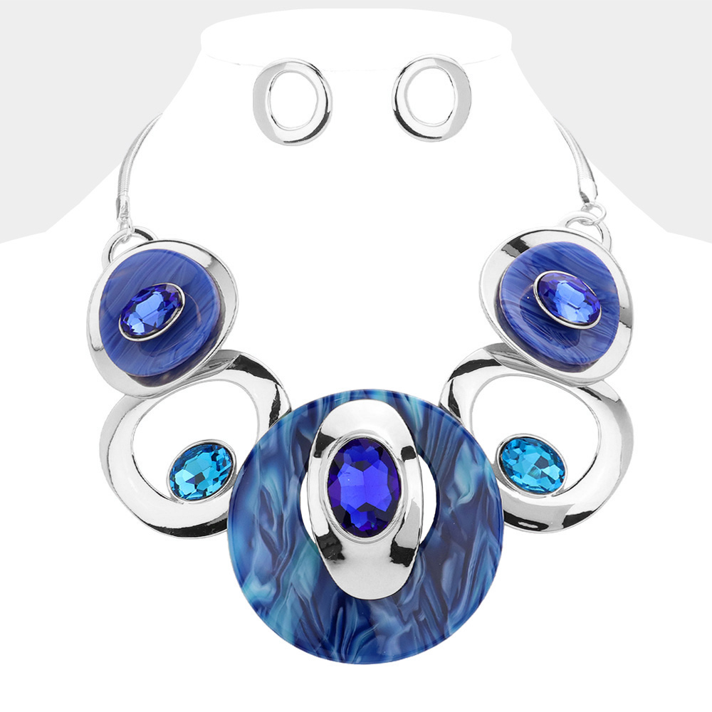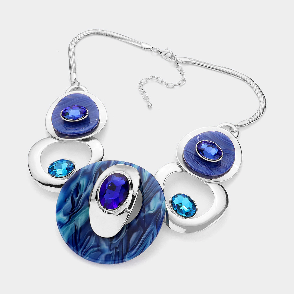 Celluloid Acetate Glass Stone Metal Statement Necklace