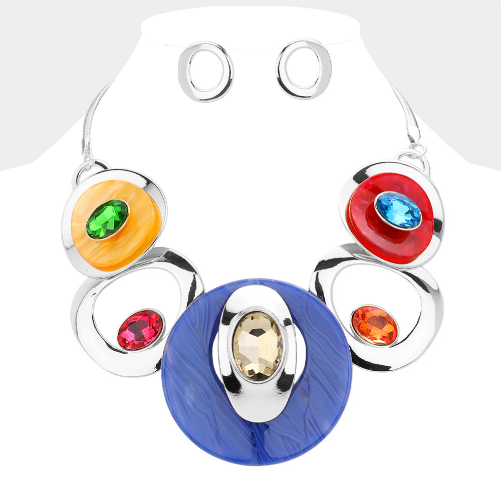 Celluloid Acetate Glass Stone Metal Statement Necklace