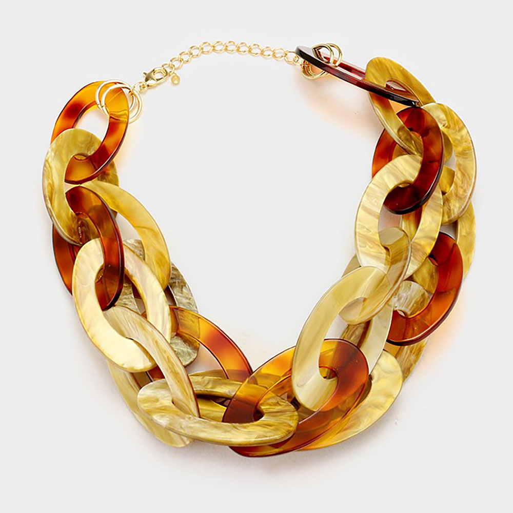 Textured Metal Frame Abstract Celluloid Acetate Drop Dangle Statement Necklace