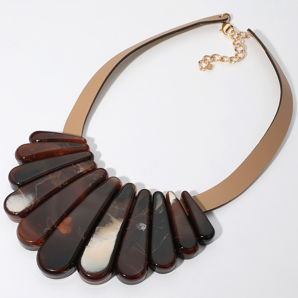 Celluloid Acetate Marbled Plate Faux Leather Statement Necklace