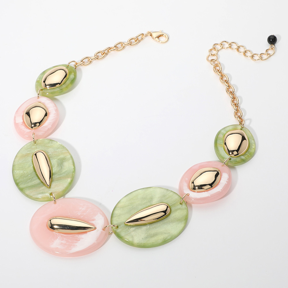 Celluloid Acetate Metal Oval Link Statement Necklace