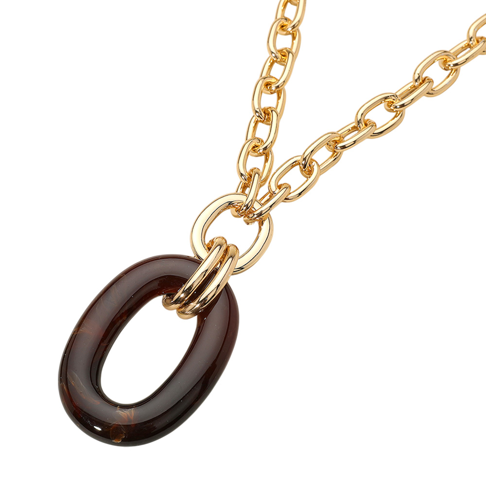 Celluloid Acetate Oval Ring Pendant Chunky Chain Necklace