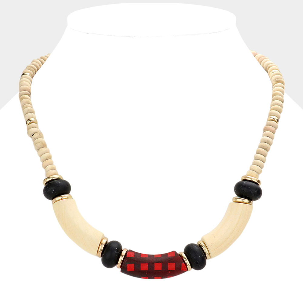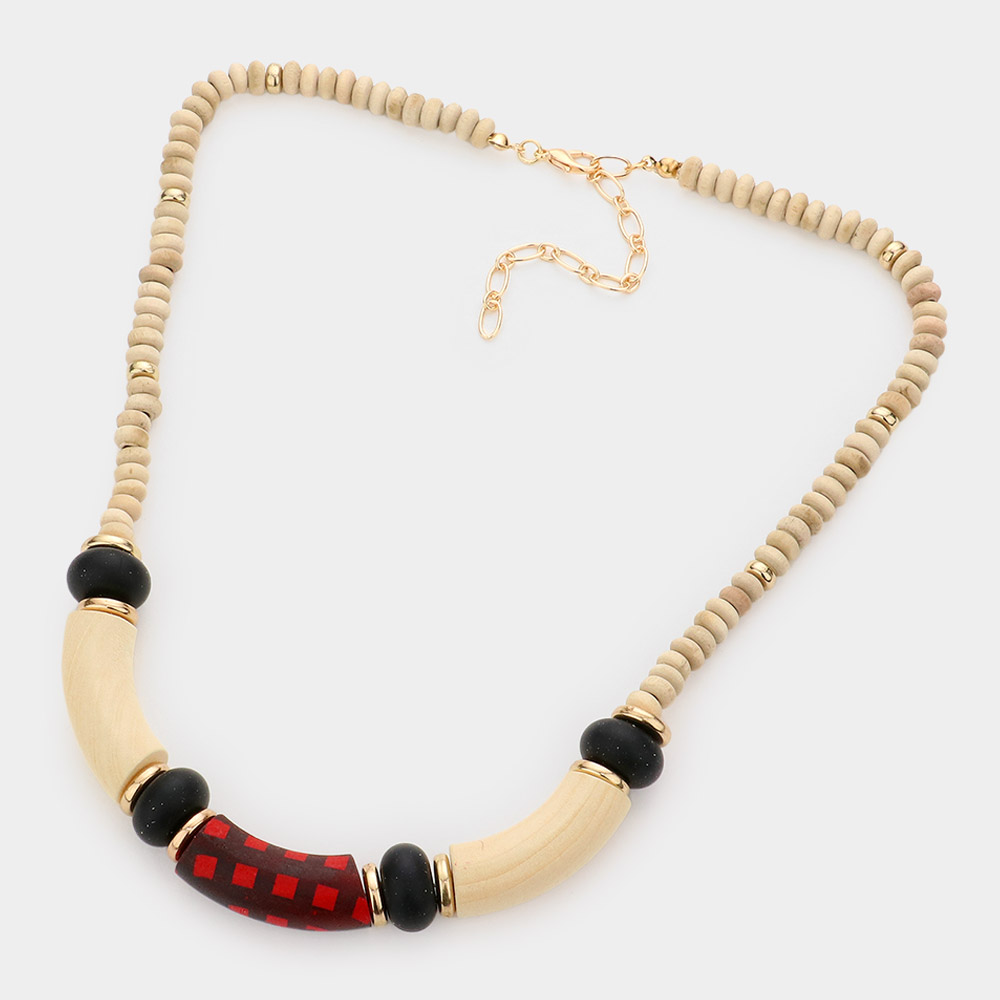 Shamballa Wood Ball Faceted Beaded Double Layered Necklace