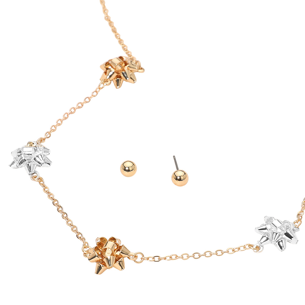 • Charming necklace and earring set featuring bow-shaped accents for a fun and festive look. Perfect for celebrations, parties, or seasonal gatherings, this playful jewelry set adds a cheerful touch to your outfit while maintaining a stylish and coordinated appeal.