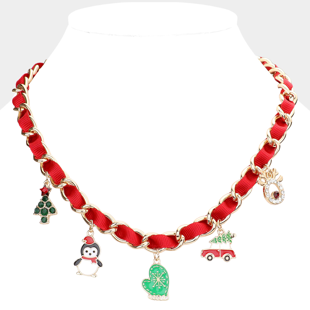 Christmas Tree Santa Hat Penguin Glove Car Rudolph Pendant Necklace