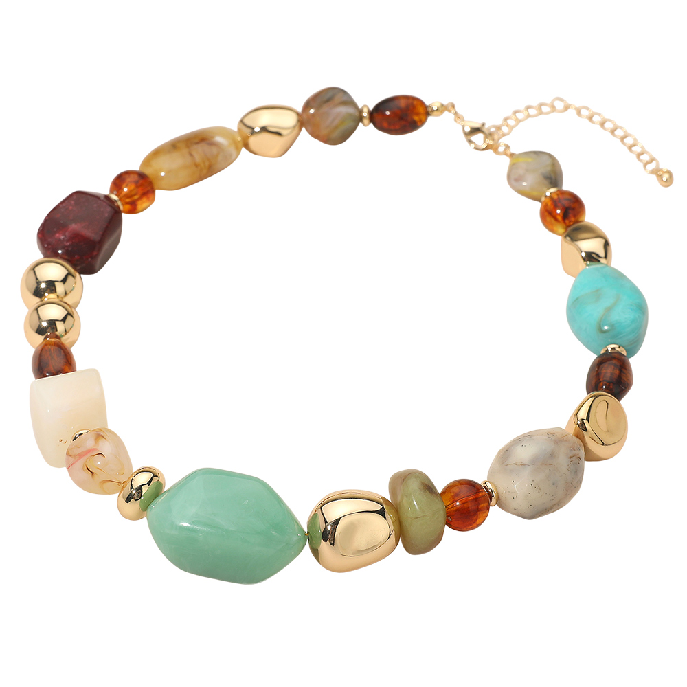 • Make a bold statement with this chunky beaded necklace featuring a mix of smooth stones and polished metallic accents. Perfect for elevating casual looks or adding flair to evening outfits, it’s a versatile piece that blends natural beauty with modern style.