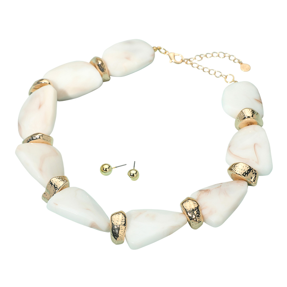 • Make a striking impression with a chunky stone necklace set featuring oversized natural-shaped beads and matching stud earrings. Perfect for special occasions or elevating everyday looks, this bold accessory combines earthy elegance with contemporary flair.