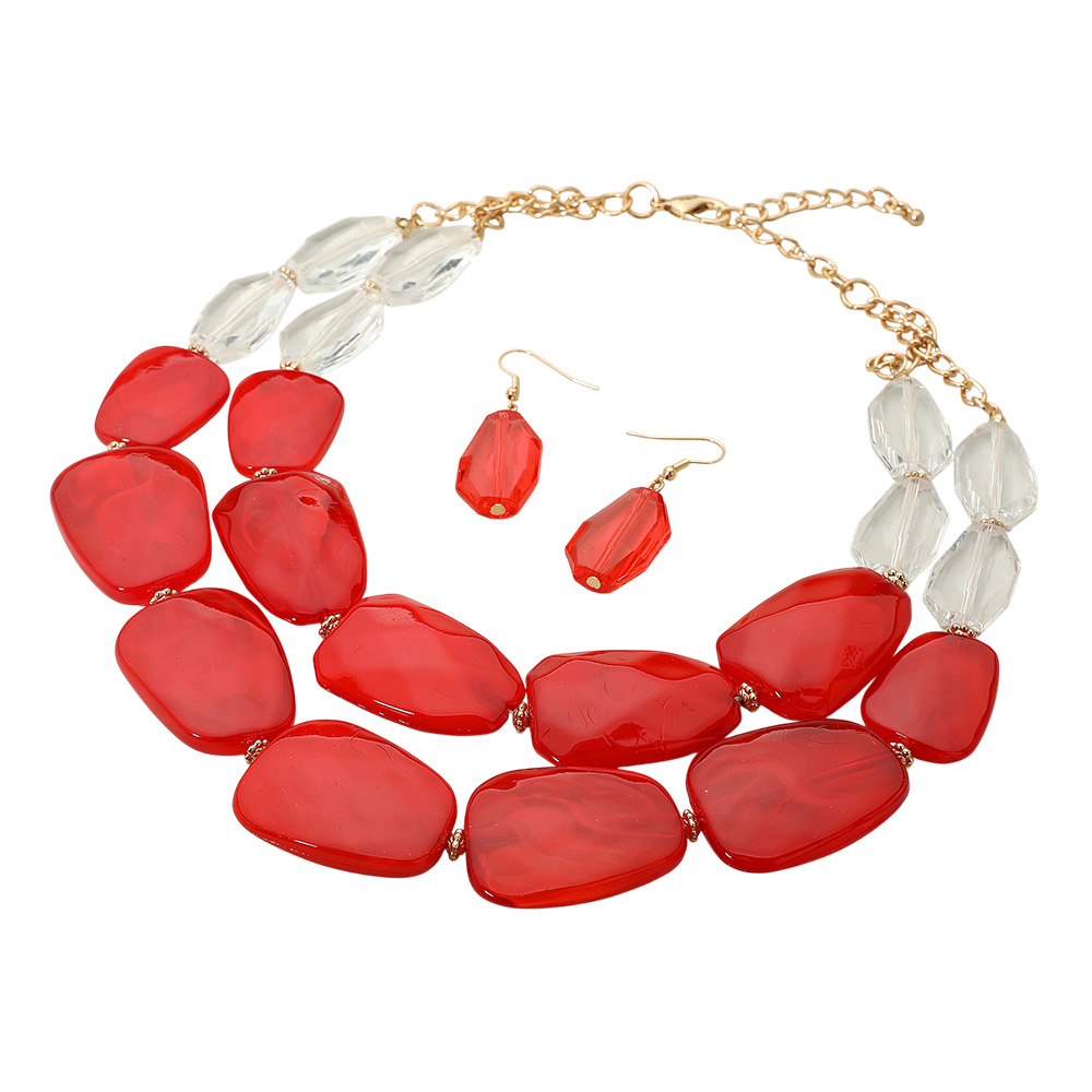 Chunky Abstract Resin Beaded Layered Statement Necklace