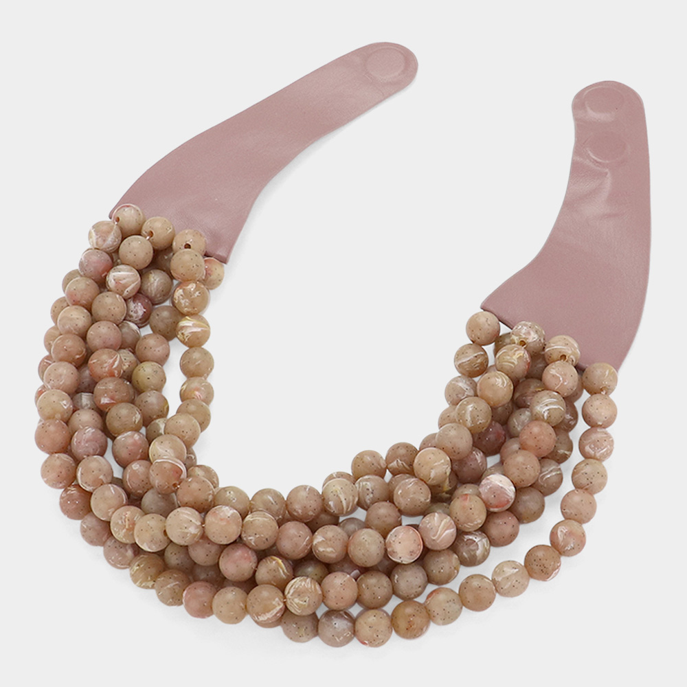 Chunky Acrylic Beaded Multi Layered Faux Leather Magnetic Necklace