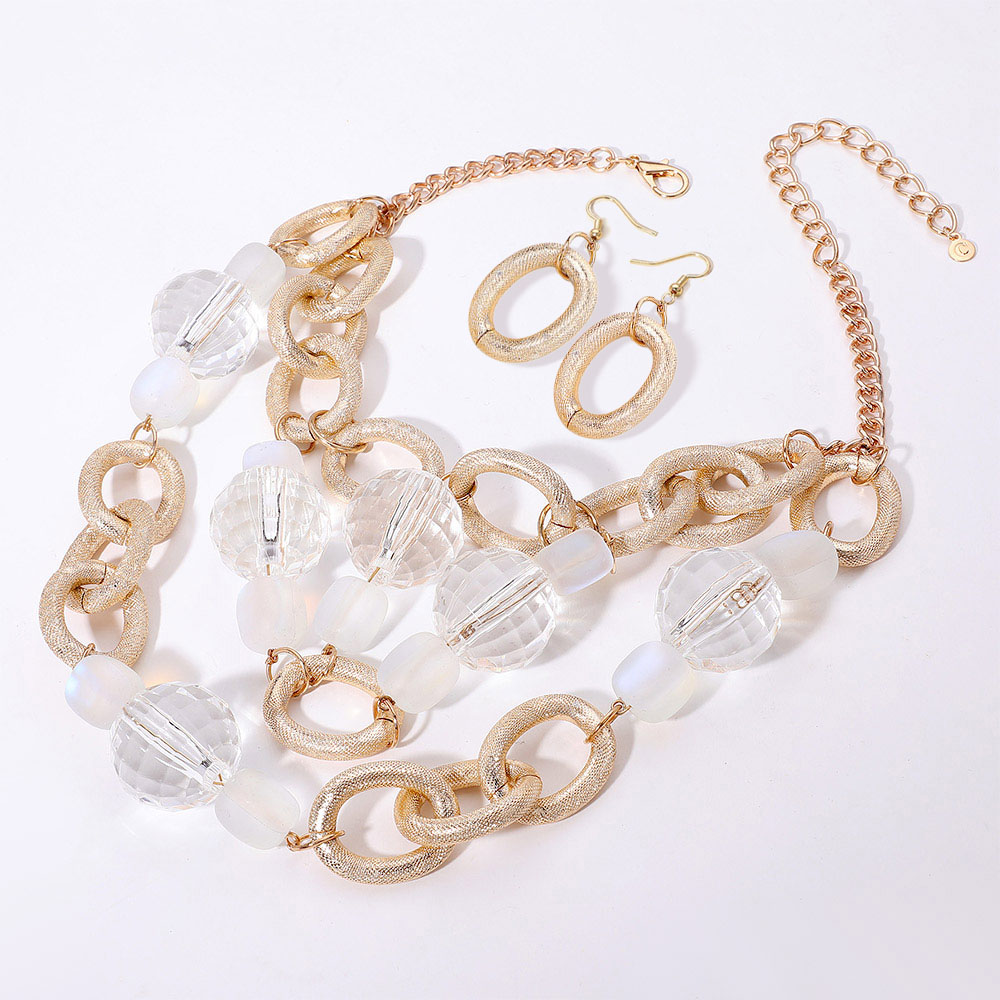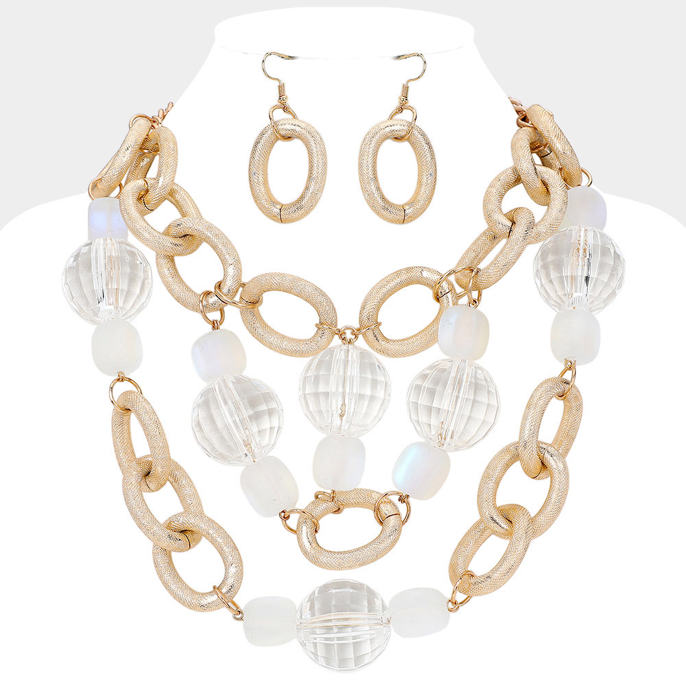 Chunky Acrylic Ball Textured Metal Ring Abstract Chandelier Statement Necklace