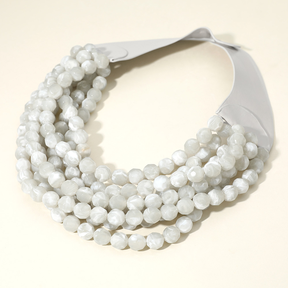 • Elevate your style with this multi-strand beaded necklace featuring faceted round beads and a wide neck band. A perfect blend of sophistication and bold design for standout occasions.