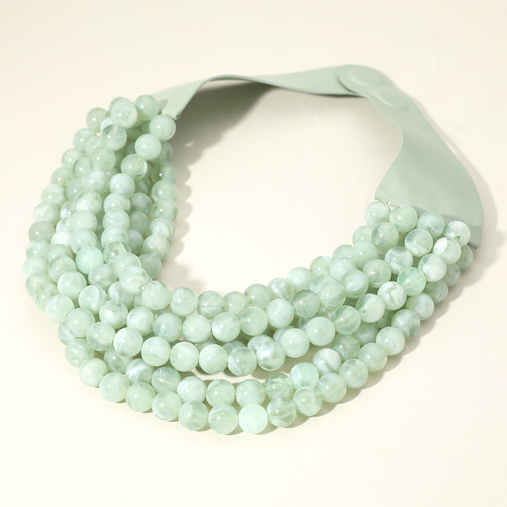 Chunky Acrylic Ball Beaded Multi Layered Faux Leather Magnetic Necklace