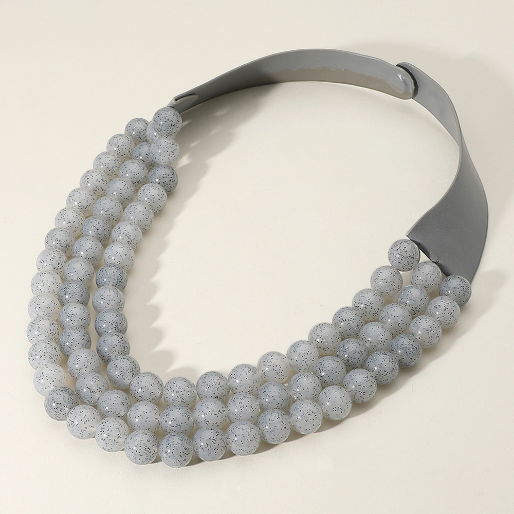 Chunky Acrylic Beaded Triple Layered Faux Leather Magnetic Necklace