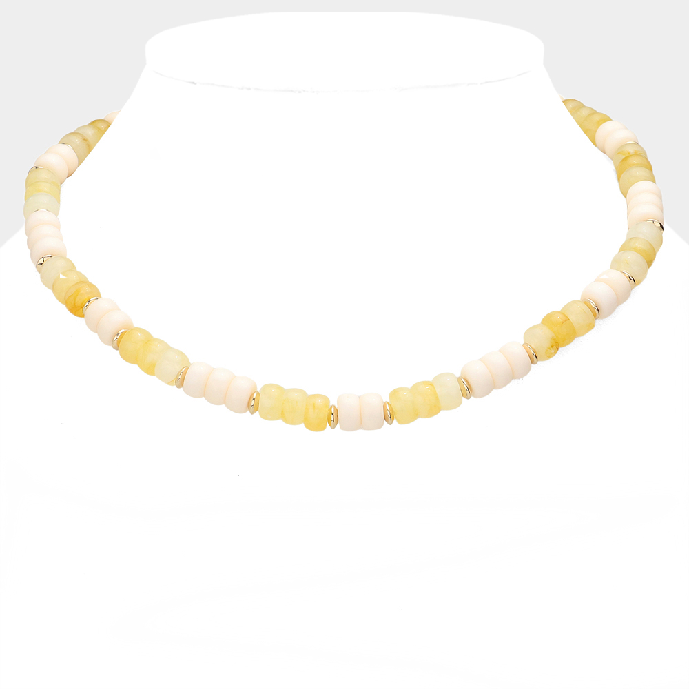 2PCS - Natural Pebble Stone Metal Ball Beaded Stretch Layered Bracelets