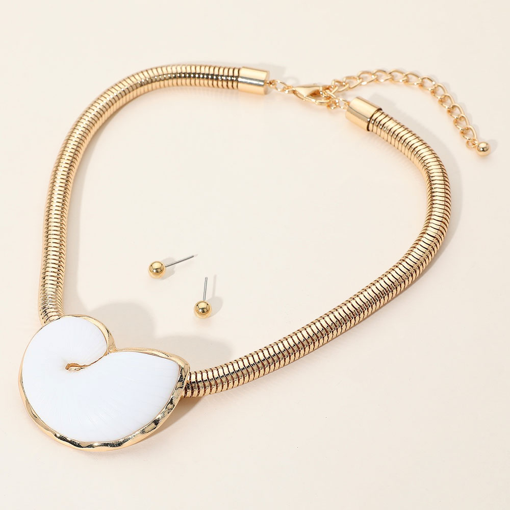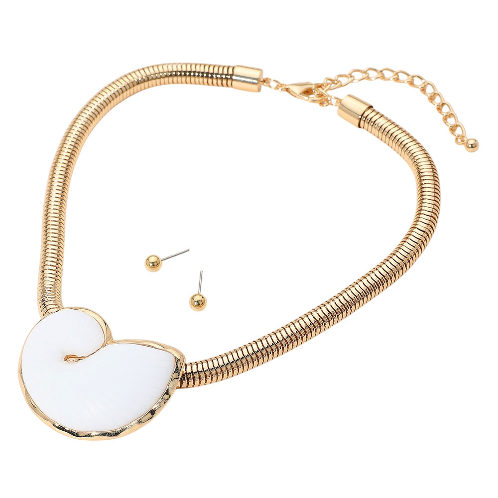 Chunky Coastal Shell Pedant Accent Snake Chain Statement Necklace