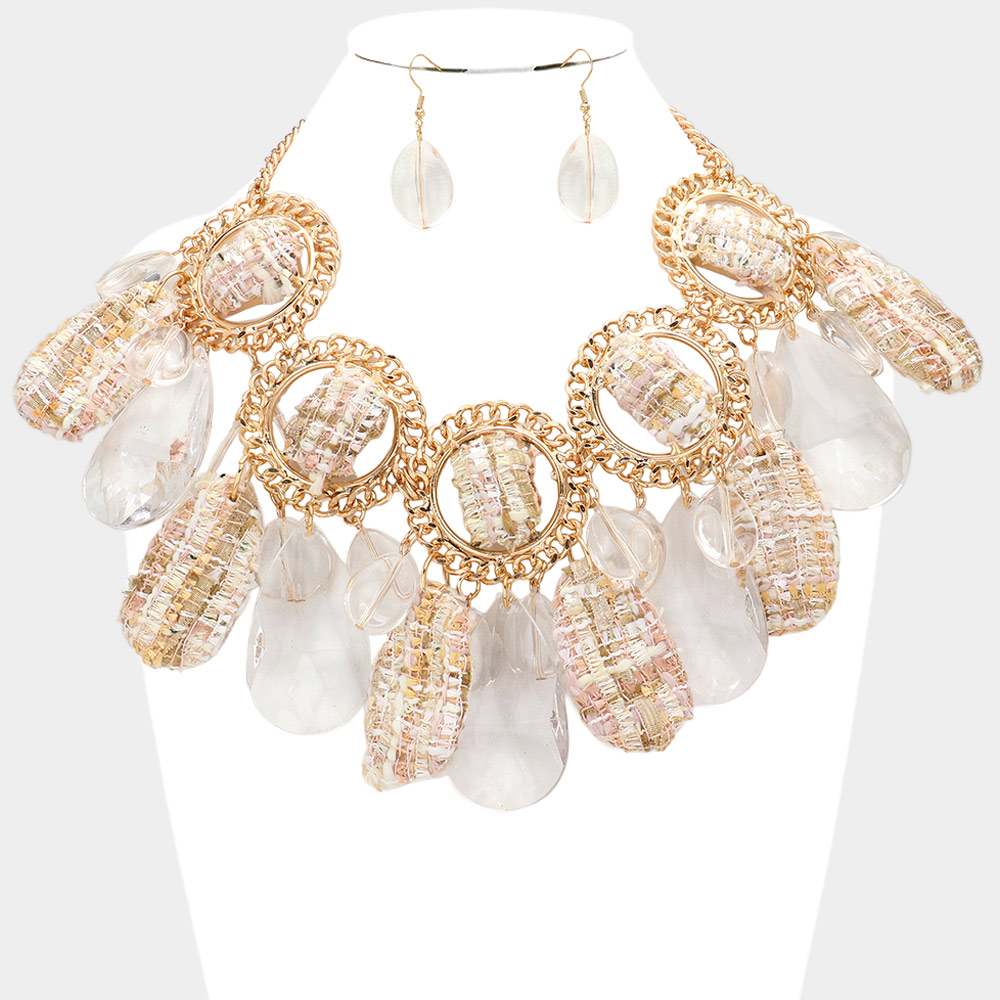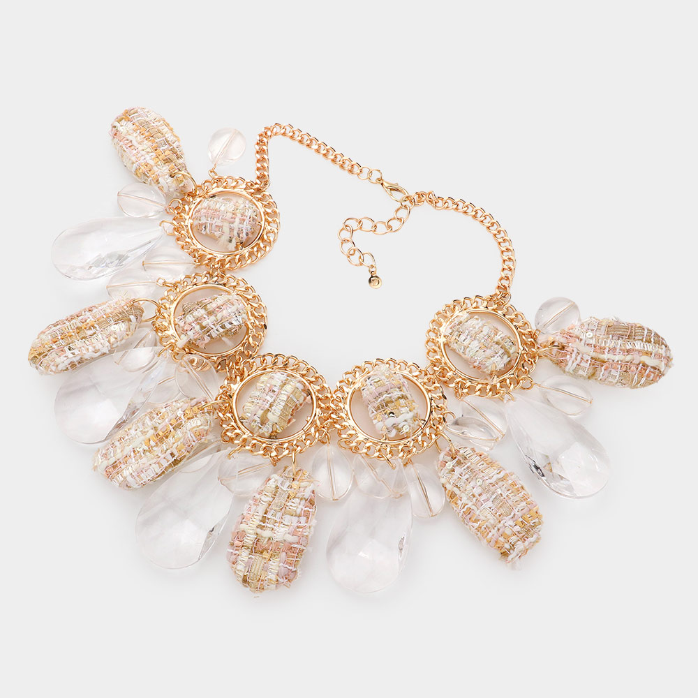 Chunky Glass Stone Tweed Covered Stone Layered Statement Necklace