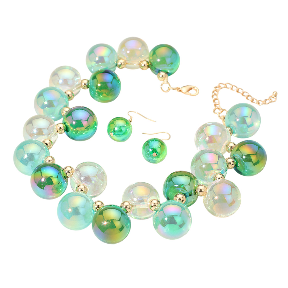 • Stylish jewelry set featuring a bold bubble bead necklace and matching earrings. Iridescent spheres add a modern twist, ideal for parties, casual outings, or fashion-forward looks.