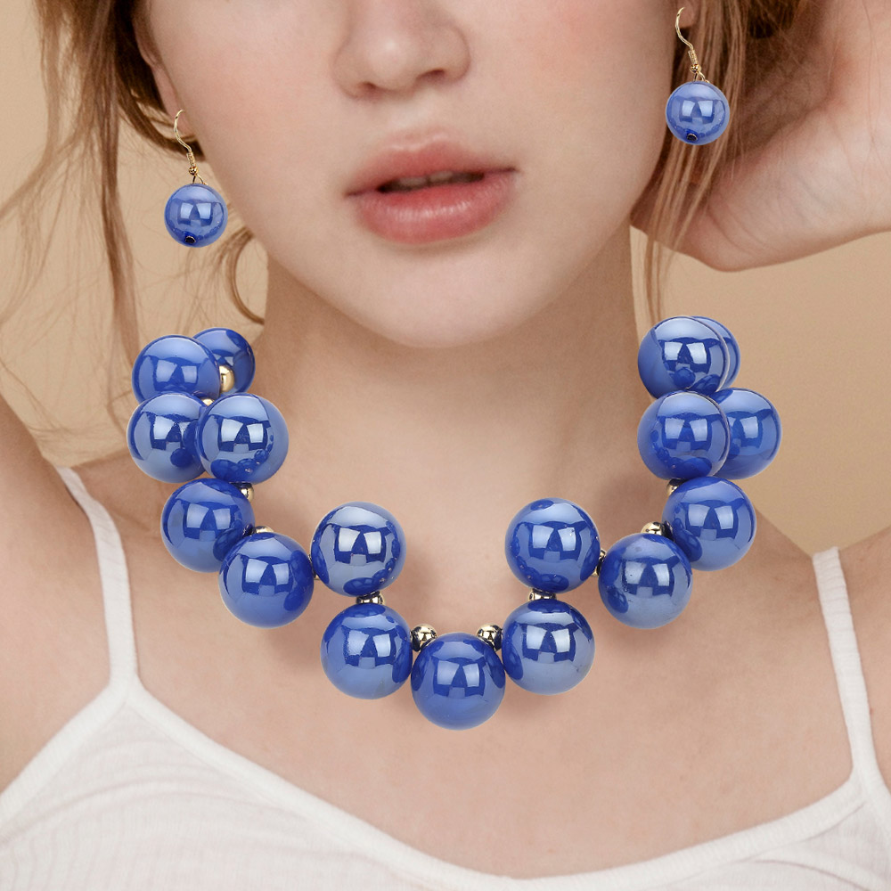 • Stylish jewelry set featuring a bold bubble bead necklace and matching earrings. Iridescent spheres add a modern twist, ideal for parties, casual outings, or fashion-forward looks.