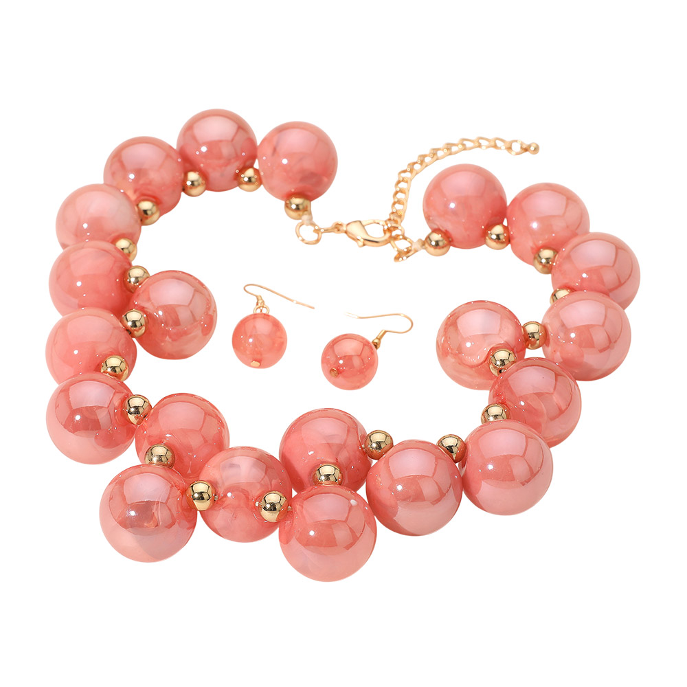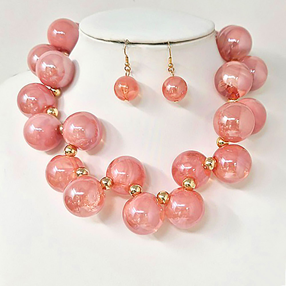 • Stylish jewelry set featuring a bold bubble bead necklace and matching earrings. Iridescent spheres add a modern twist, ideal for parties, casual outings, or fashion-forward looks.