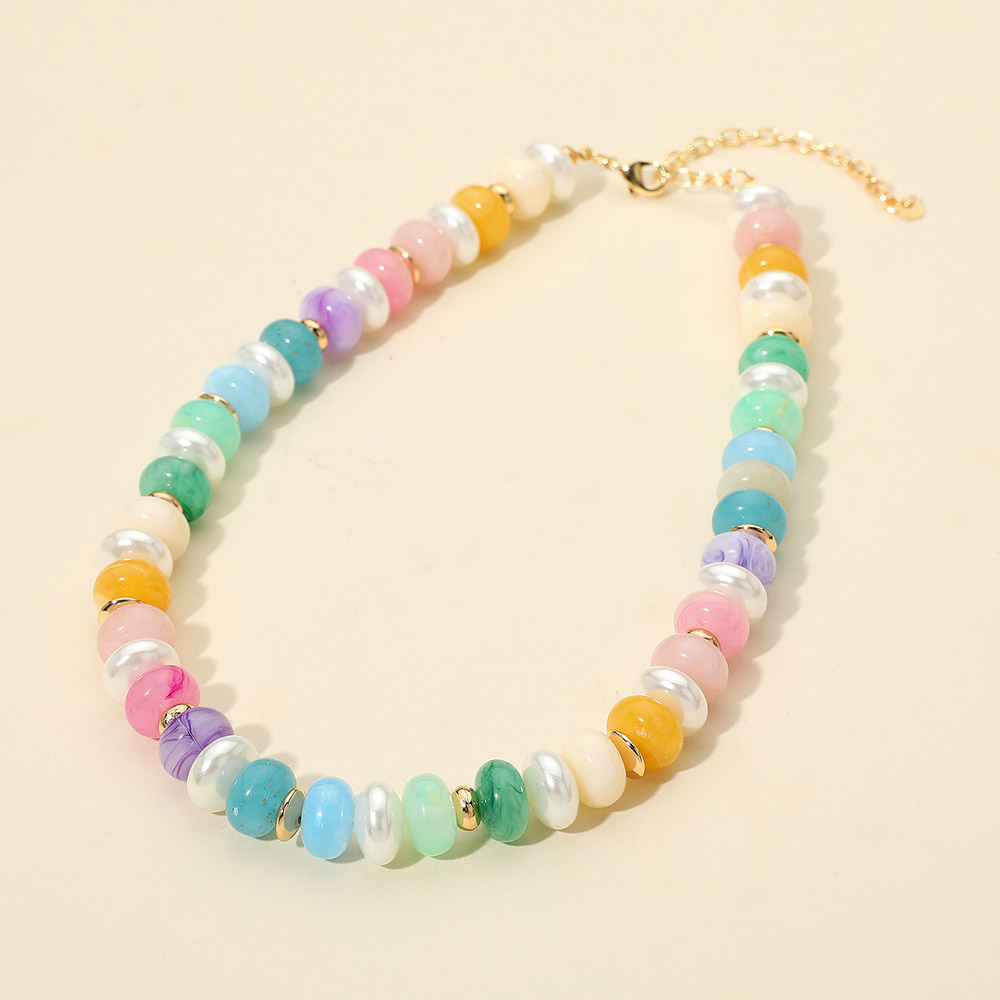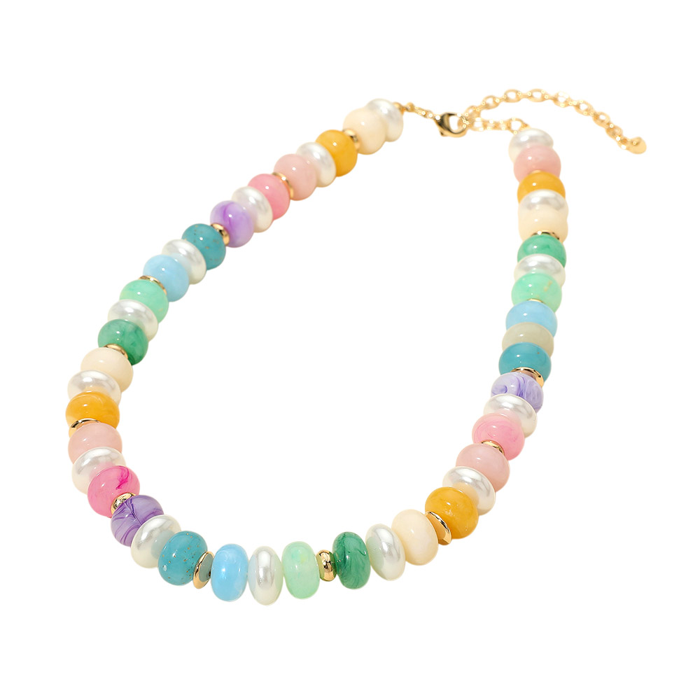 Chunky Marbled Beads Pearl Beaded Statement Necklace