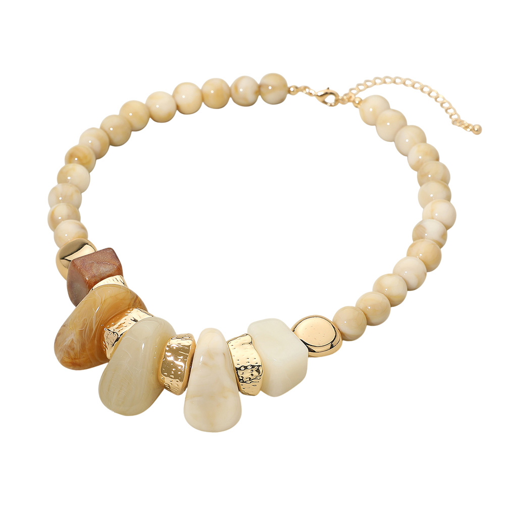 Chunky Marbled Resin Pebble Beaded Statement Necklace Chunky Marbled Resin Pebble Beaded Statement Necklace