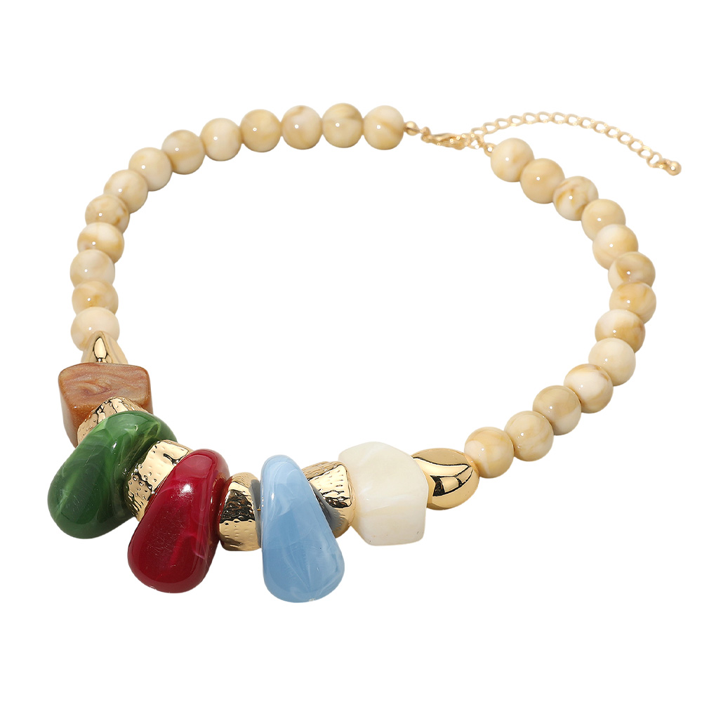 Chunky Marbled Resin Pebble Beaded Statement Necklace Chunky Marbled Resin Pebble Beaded Statement Necklace