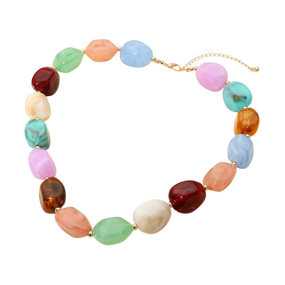 Chunky Marbled Resin Pebble Beaded Statement Necklace