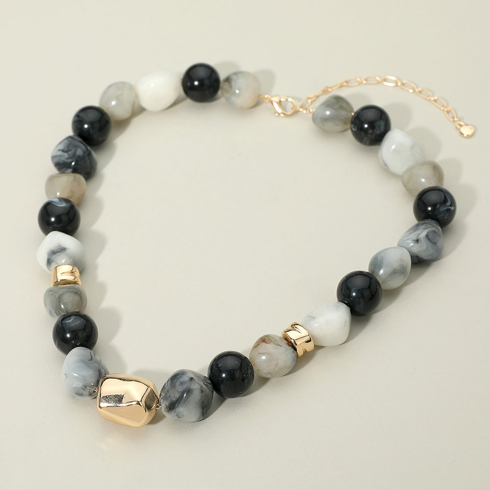 Chunky Metal Accent Resin Pebble Beaded Statement Necklace