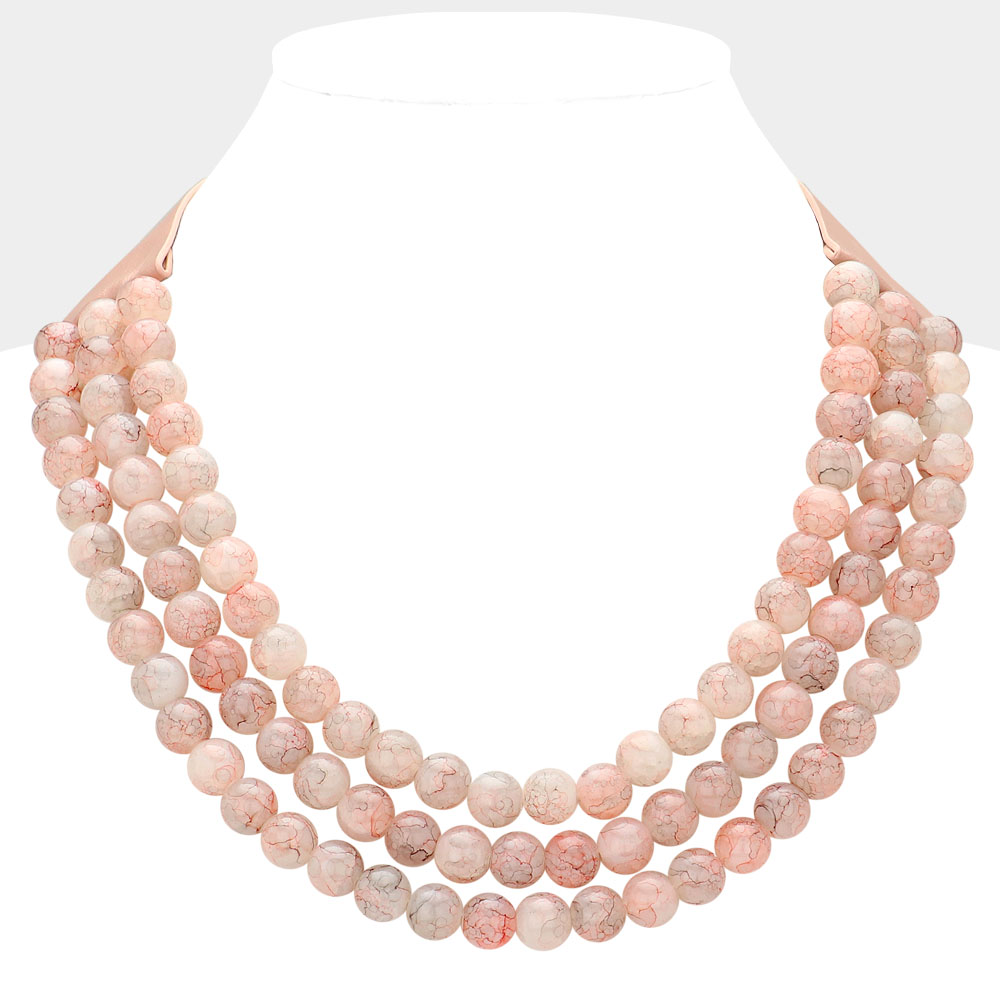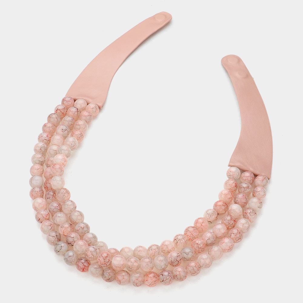 Chunky Metal Ball Beaded Triple Layered Faux Leather Magnetic Necklace
