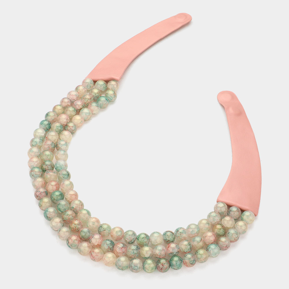 Chunky Metal Ball Beaded Triple Layered Faux Leather Magnetic Necklace