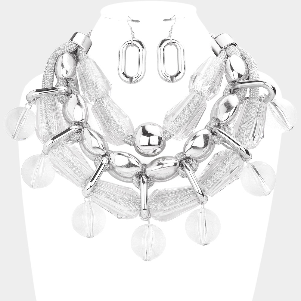 Lucite Accented Faceted Beaded Stretch Bracelet