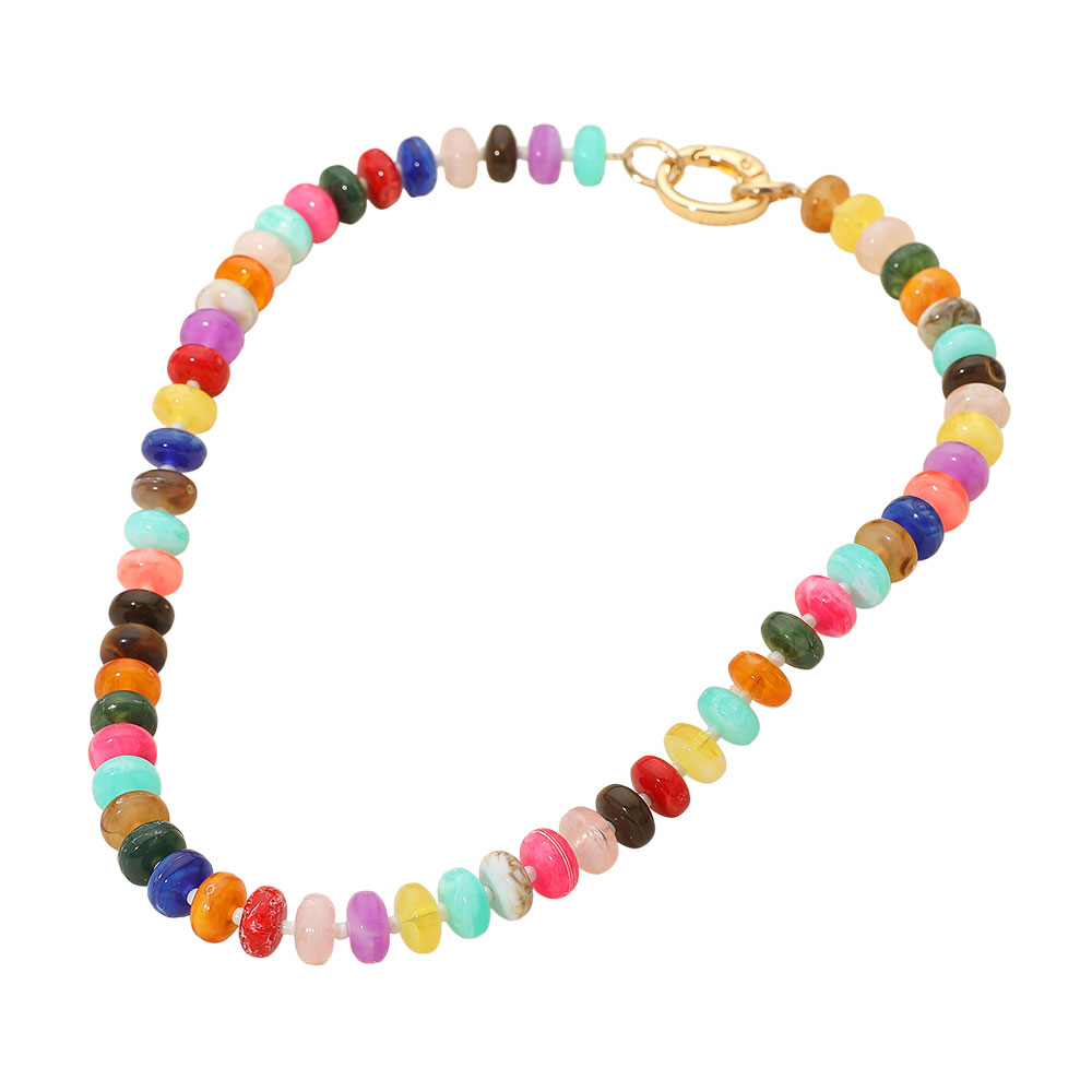 • Brighten up your look with this multicolor beaded necklace, featuring vibrant polished beads for a playful yet chic touch. Perfect for layering or wearing solo, this versatile accessory adds instant charm to both casual outfits and elevated styles, making it a must-have statement piece.