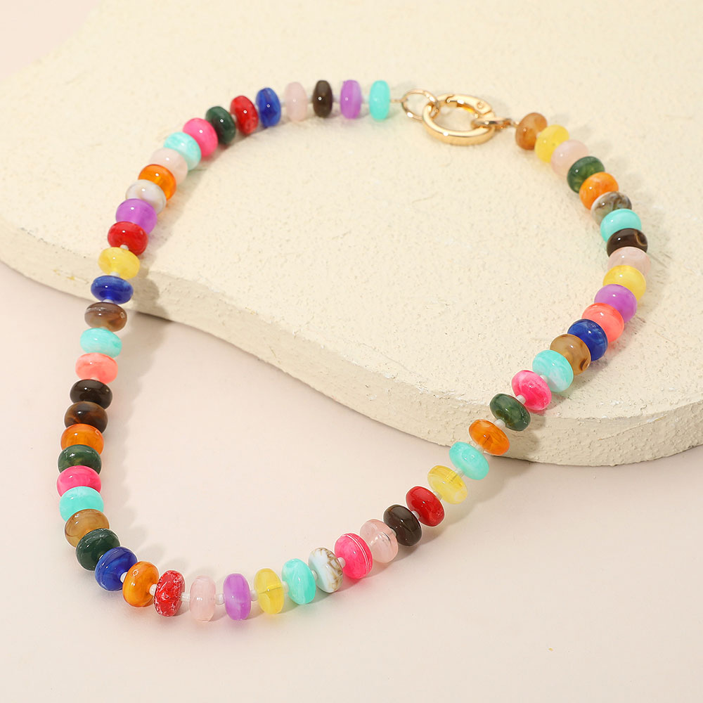 Chunky Multicolor Resin Flat Disc Beaded Necklace
