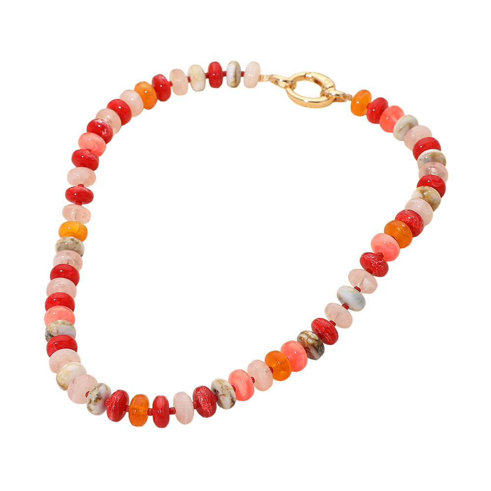 • Brighten up your look with this multicolor beaded necklace, featuring vibrant polished beads for a playful yet chic touch. Perfect for layering or wearing solo, this versatile accessory adds instant charm to both casual outfits and elevated styles, making it a must-have statement piece.
